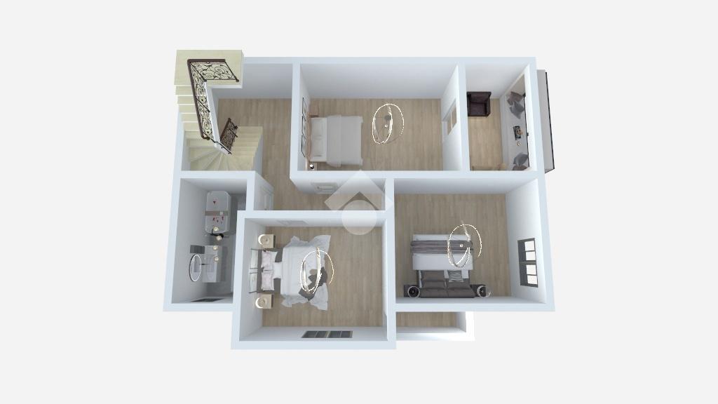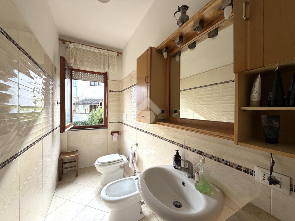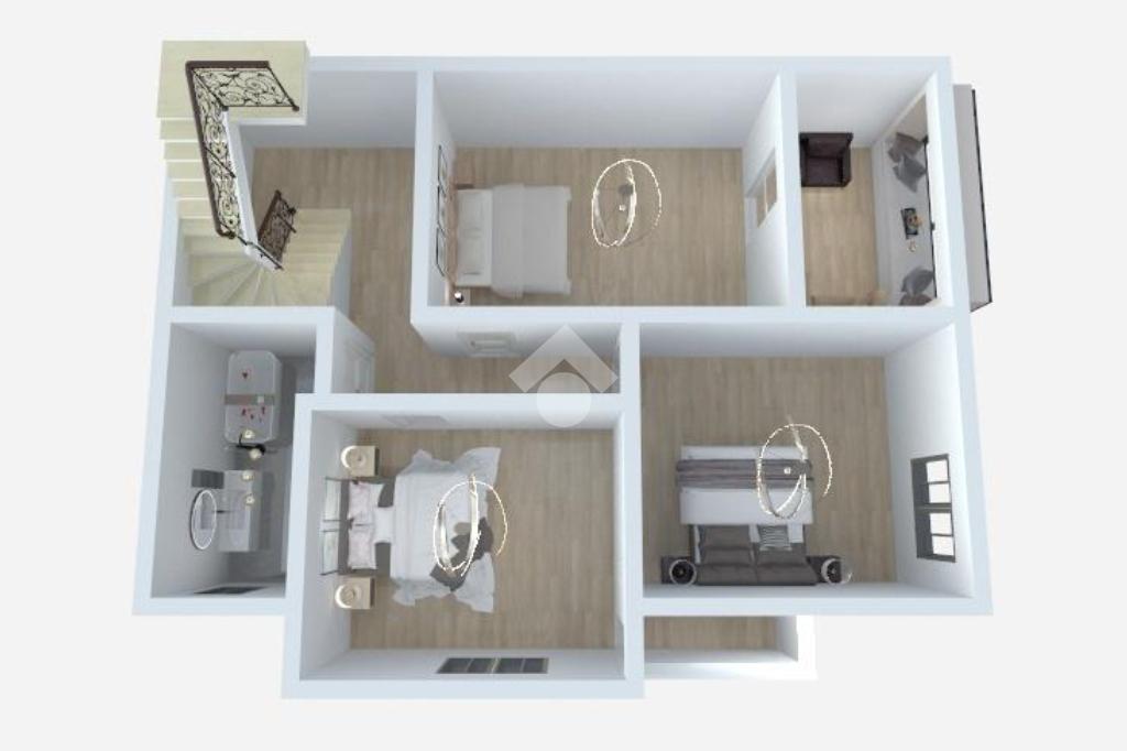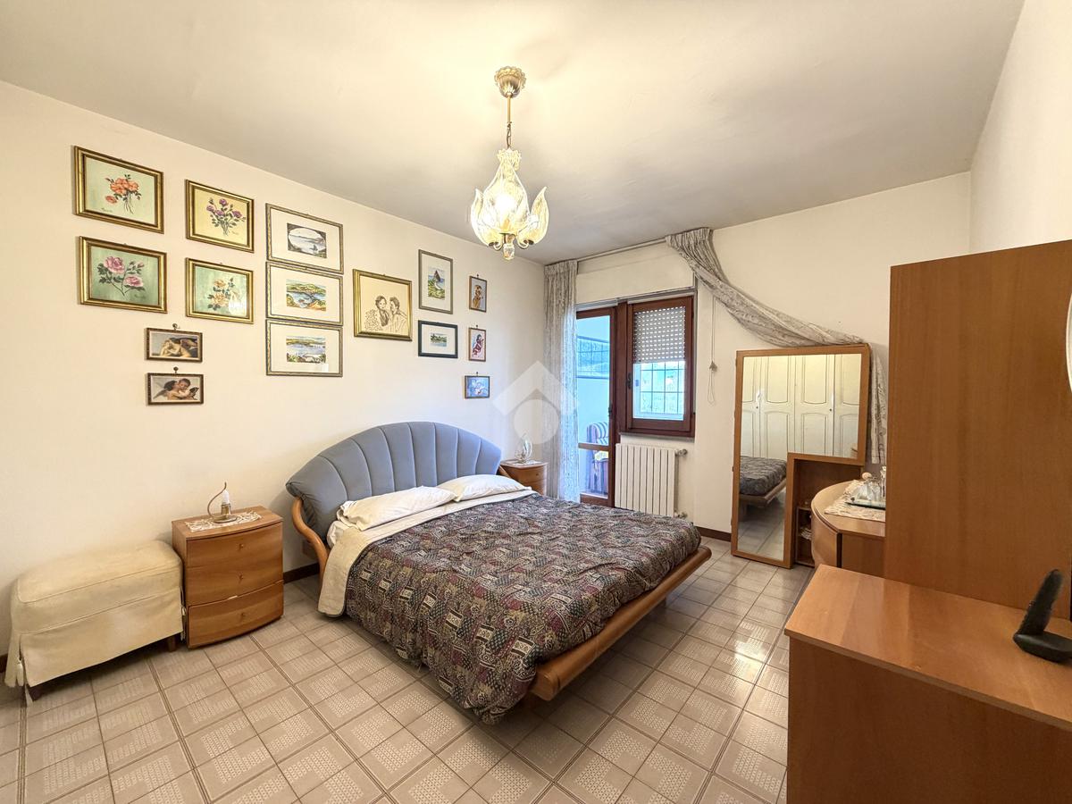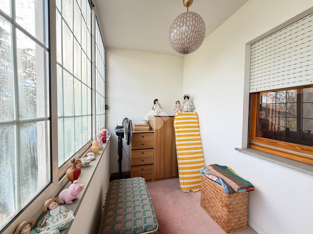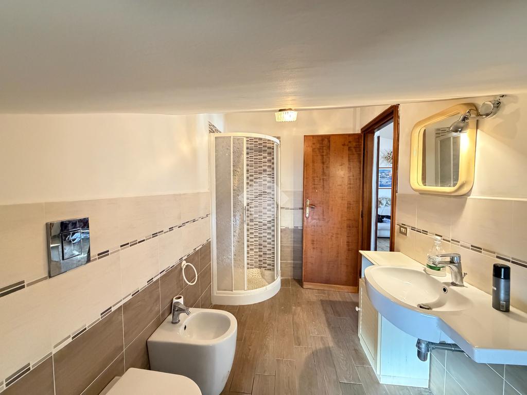 La zona notte, posta al piano superiore, ospita tre camere da letto, di cui una con accesso a un balcone verandato, oltre a un secondo bagno finestrato con vasca, pensato per offrire privacy e comodità.