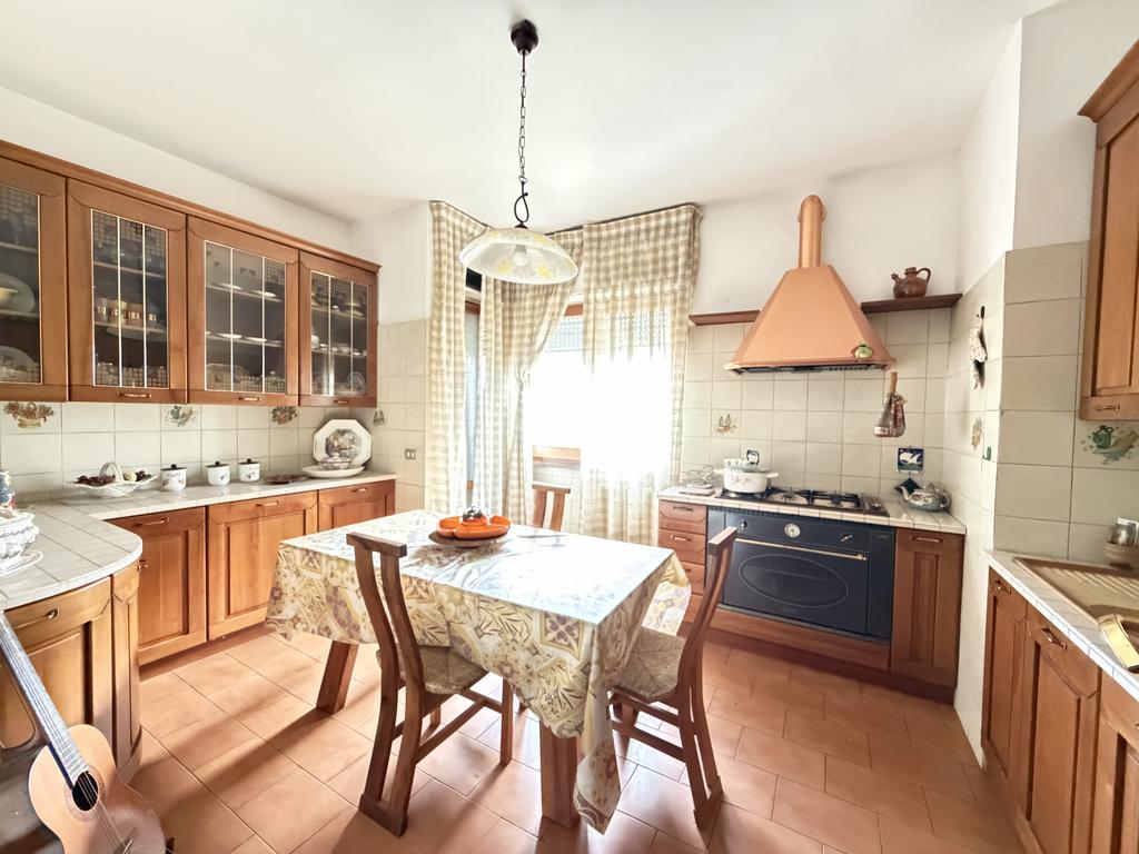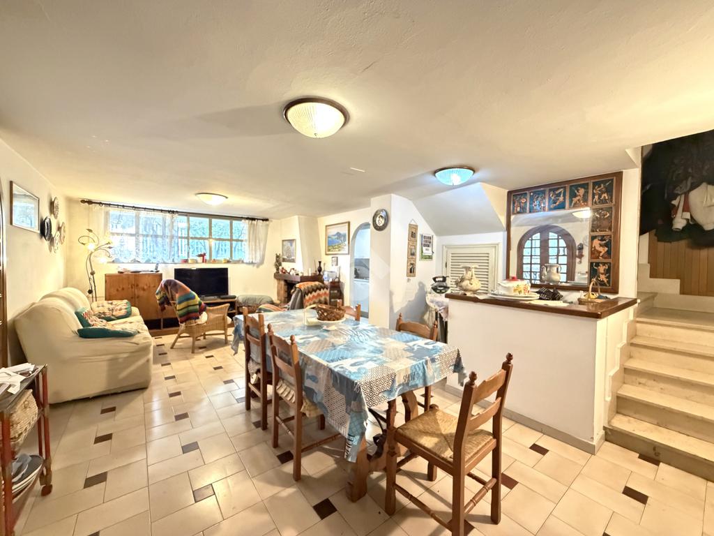 Il piano terra è caratterizzato da un accogliente rustico con camino e angolo cottura, perfetto per momenti conviviali, oltre a un comodo garage che aggiunge ulteriore spazio all’abitazione.